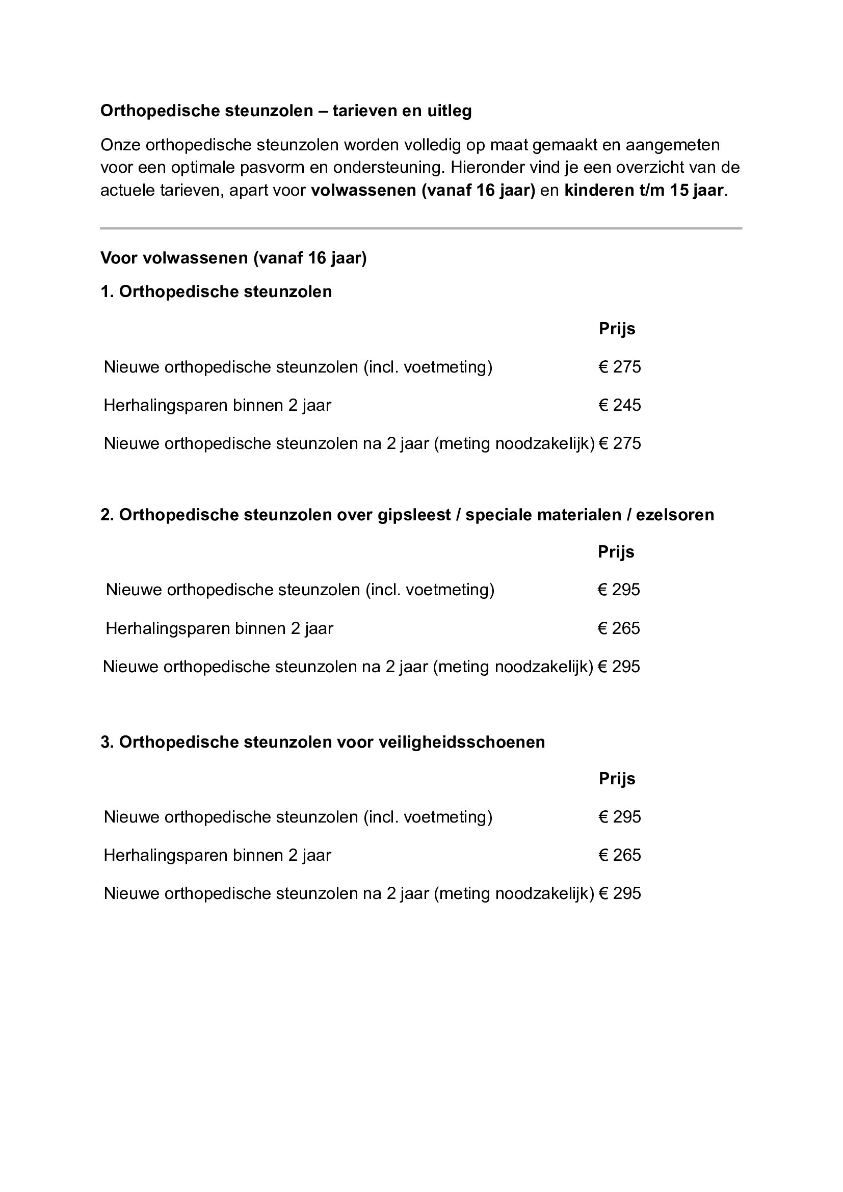 De kosten van steunzolen worden meestal gedeeltelijk of